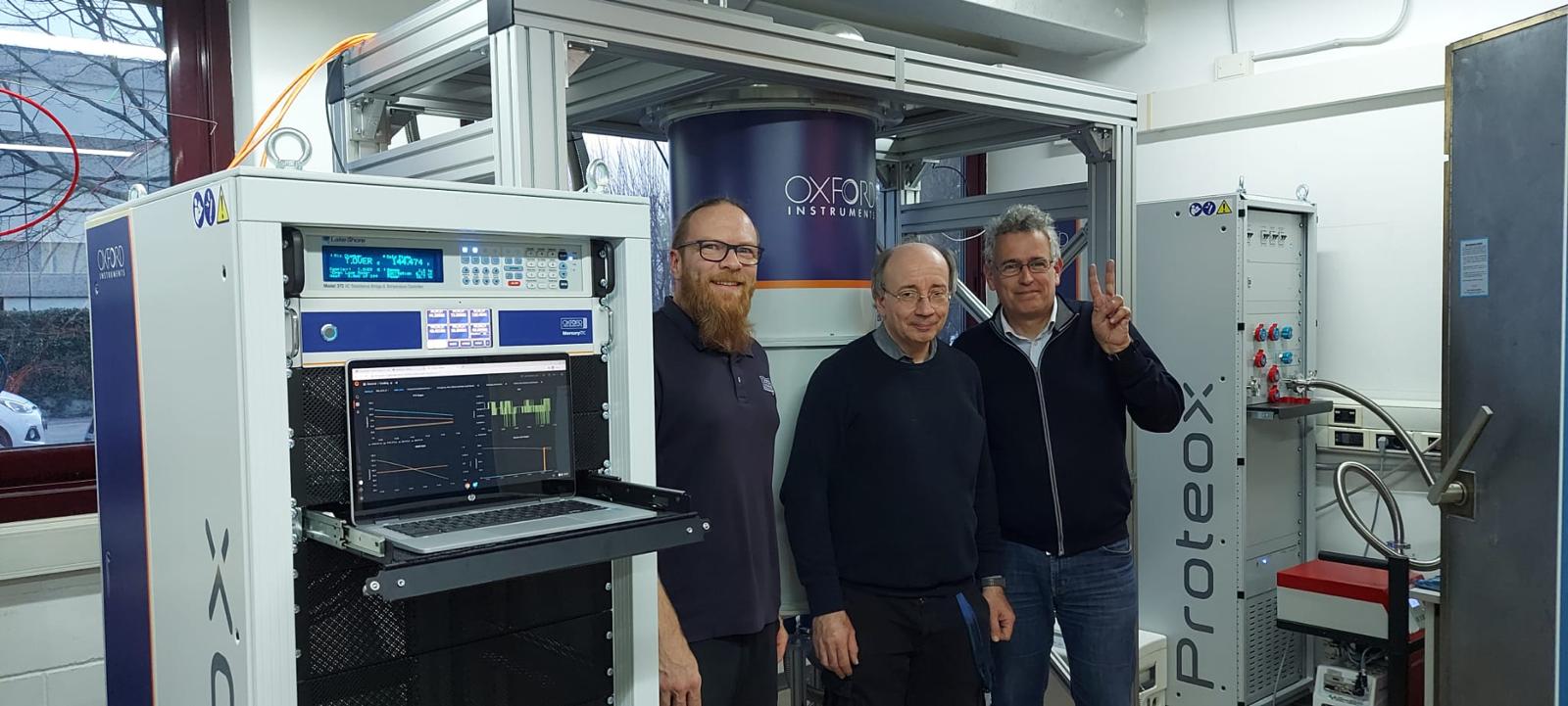 The Proteox MX450 is a cryogen-free dilution refrigerator with a cooling power of 450 microwatts at 100 mK and a base temperature of 10 mK. There is a wide sample space at the 10 mK plate, with an available diameter of 360 mm.